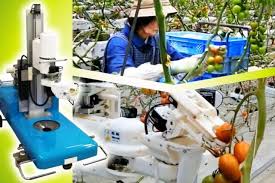 For the tomatoes measured in this way, a program confirms the tomato color and harvesting feasibility with a manipulator, thereby forming intellectual assessments of the actual picking (intelligence). Once those steps are complete, a harvest manipulator developed to leave no scratches on the fruit is activated (manipulation). To efficiently pick tomatoes and other delicate, easily damaged fruits, a round manipulator is used to sever the small stems connecting each separate piece of clusters of fruits much like bunches of grapes, and carefully harvest them free of damage. This system functions by grasping the fruit and stems separately, then applying appropriate force to separate and detach them. The method was developed from meticulous studies of the picking motions practiced by human beings in the field. Moves are well underway to advance beyond robots used to perform conventional work in plants and other specified locations, including development of models for use in human activity spheres, as well as going on to furnish support in other aspects of everyday life.